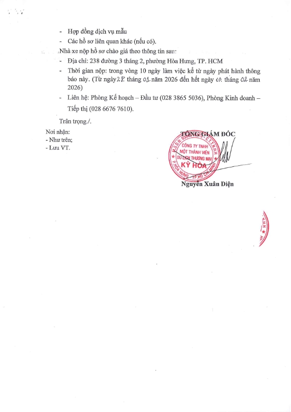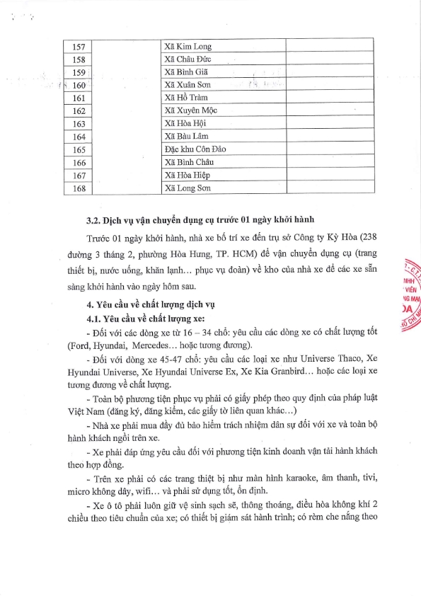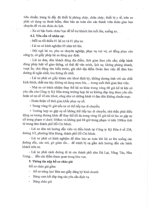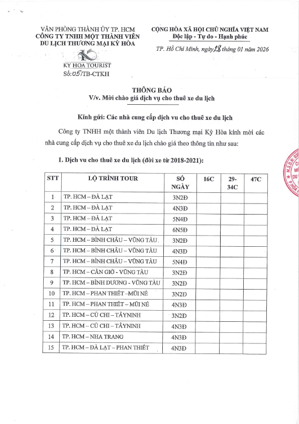 THÔNG BÁO MỜI CHÀO GIÁ DỊCH VỤ THUÊ XE DU LỊCH