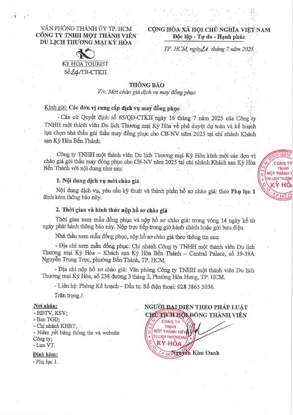 Công Ty TNHH MTV TM-DL Kỳ Hòa- Khách sạn Kỳ Hòa HCM