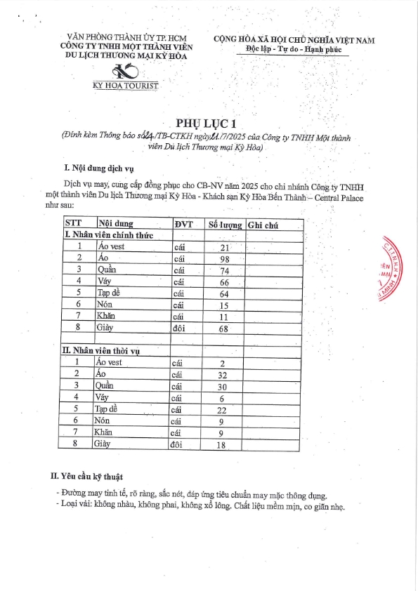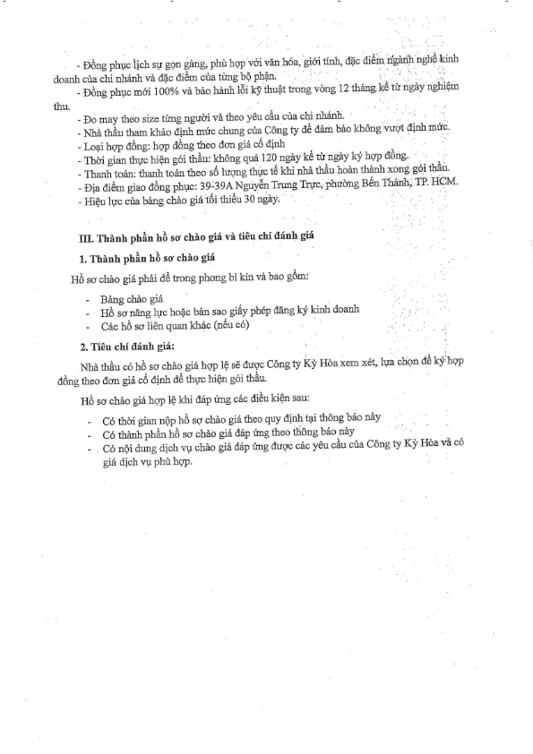 THÔNG BÁO CHÀO GIÁ DỊCH VỤ MAY ĐỒNG PHỤC