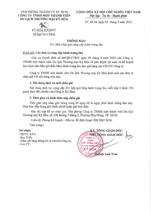 THÔNG BÁO MỜI CHÀO GIÁ CUNG CẤP BÁNH TRUNG THU