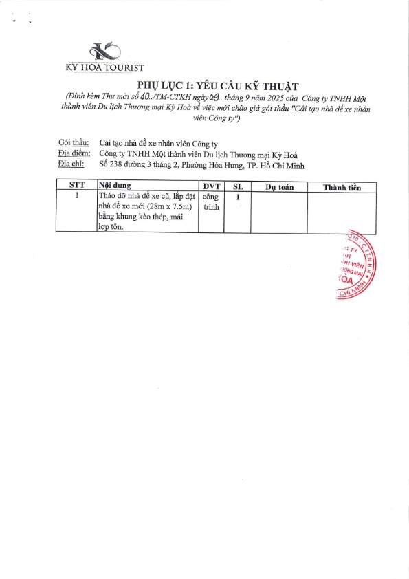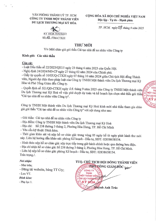 THƯ MỜI CHÀO GIÁ GÓI THẦU CẢI TẠO NHÀ ĐỂ XE NHÂN VIÊN CÔNG TY